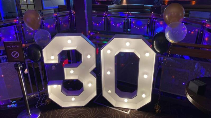 Our giant and most popular LED free standing numbers, stand 4ft tall and 2.5ft width. Not only providing amazing lighting for your photos, the numbers will give your celebration the wow factor making no birthday or anniversary complete without them.