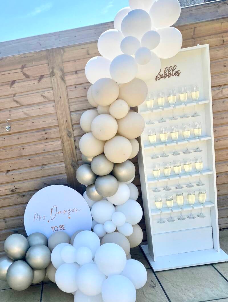 Prosecco Wall With Glass Flutes & Balloon Garland Price From - £140